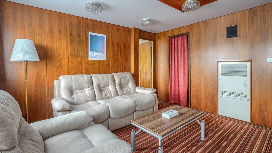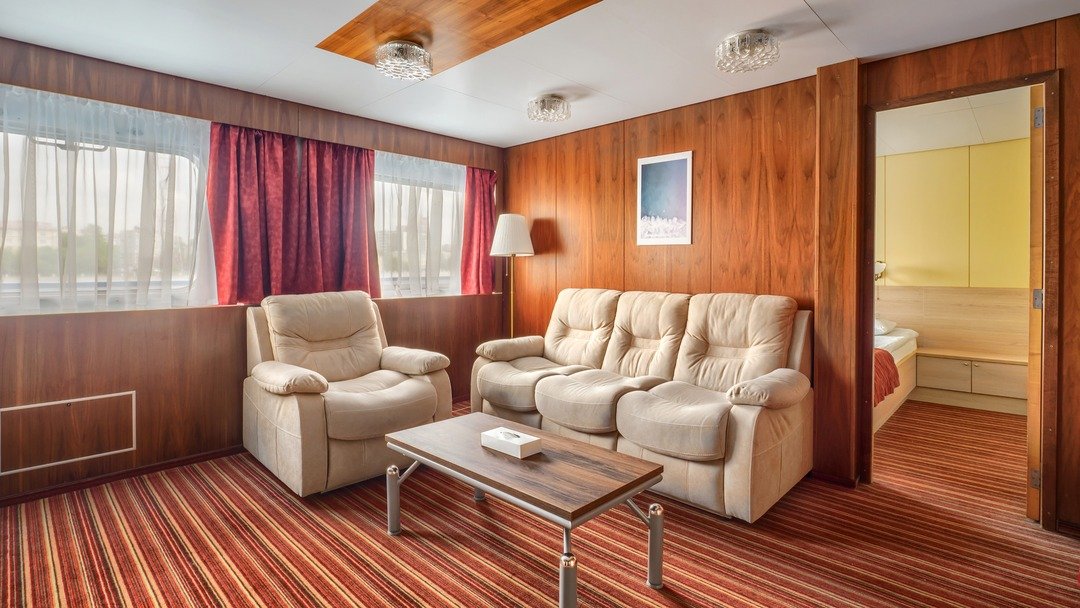 Двухкомнатная каюта с удобствами (душ, санузел, кондиционер). Каюта рассчитана на размещение от 2 до 4 человек.