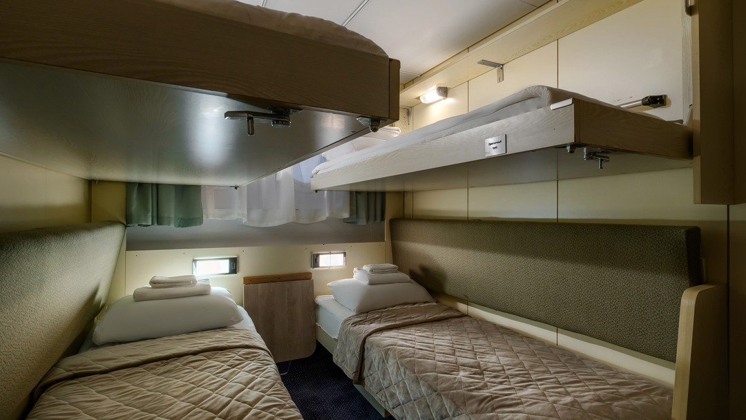 Возможна продажа каюты в двухместном одноярусном размещении (по стоимости 2-местной одноярусной каюты) и в трёхместном двухъярусном размещении (по стоимости 3-местной двухъярусной каюты).