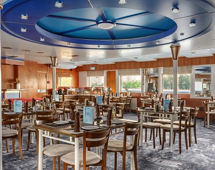 - Завтрак — шведский стол или заказная система с элементами шведского стола, фиксированная рассадка. Включённые напитки (без ограничения): вода, сок, чай, кофе. В рейсах до 4-х дней при ранней высадке в день прибытия завтрак континентальный;