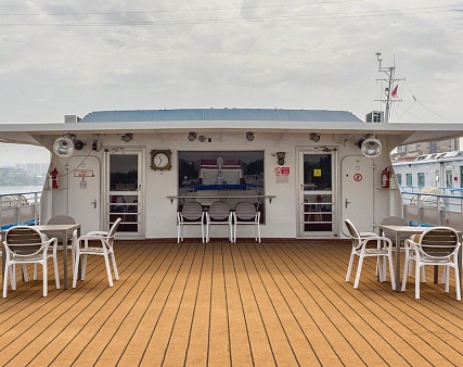 В каюте: одно спальное место, шкаф для одежды, радио, душ, санузел, кондиционер, обзорное окно, электророзетка на 220V. Площадь кают: №437 - №440 - 6,6 кв.м., №441 - №444 - 7,83 кв.м.