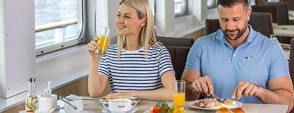 - Завтрак: шведский стол или заказная система с элементами шведского стола. Включены напитки без ограничения: вода, сок, чай, кофе. В рейсах до 4-х дней при ранней высадке в день прибытия завтрак континентальный;