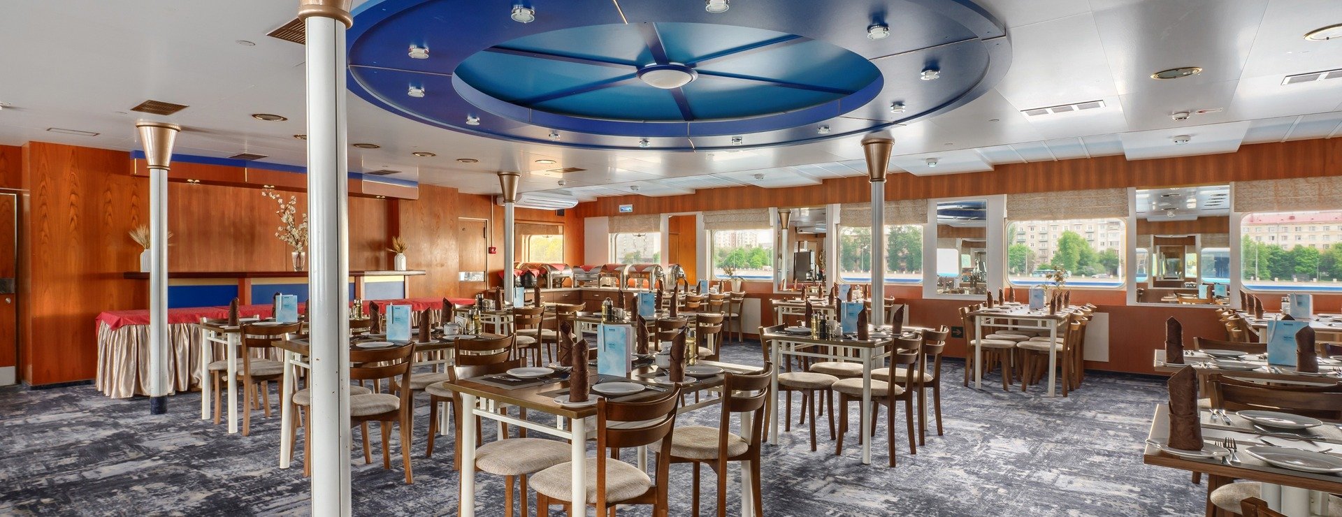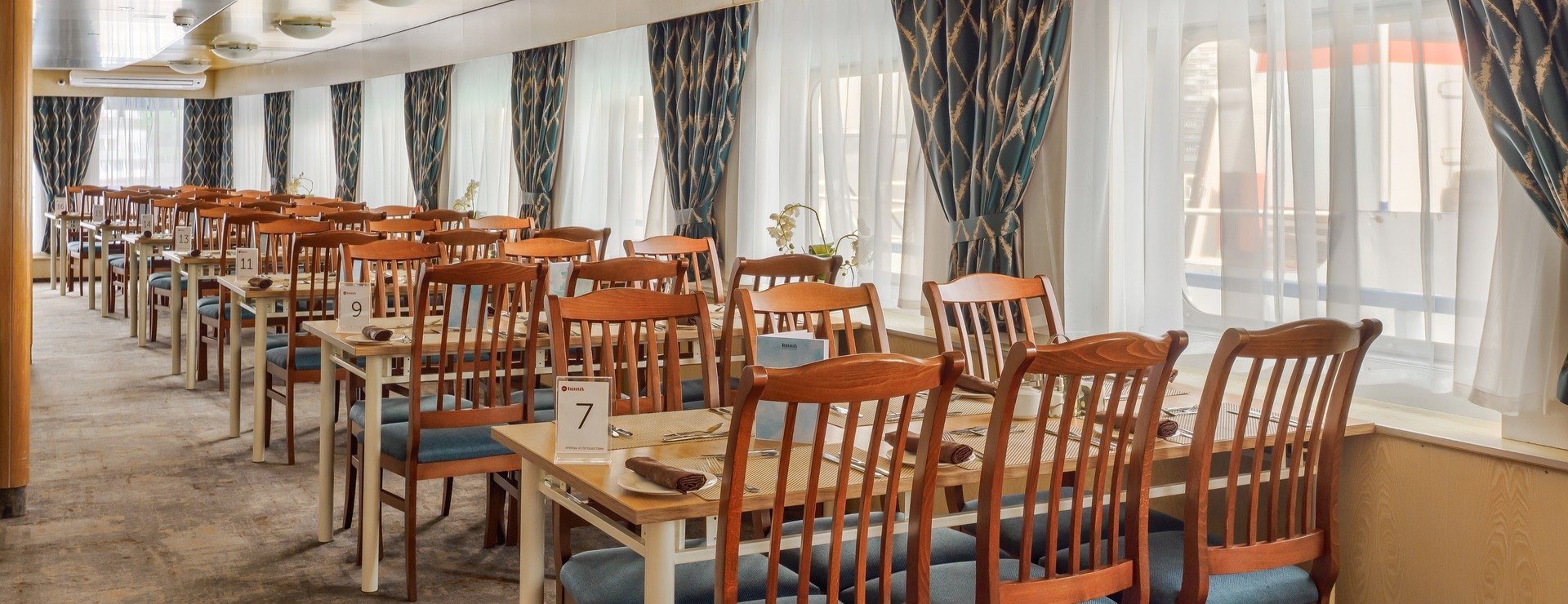 Расширенный тариф. Фиксированная рассадка в ресторане «Нева» на шлюпочной палубе, количество мест ограничено.