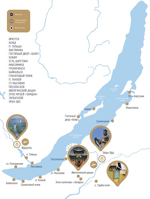 ИркутскТальцыЛиствянкаИркутскМалое мореХужирБухты Большого моряострова Малого моряИркутск (2 дня)