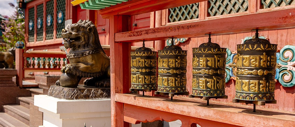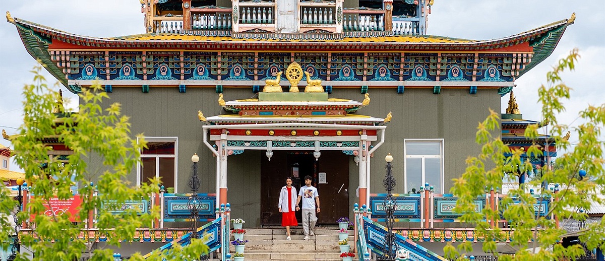 Экскурсия заканчивается на территории Буддийского центра Ринпоче Багша. Здесь находится самая большая в России статуя Будды Шакьямуни, выполненная из бронзы и покрытая сусальным золотом. Также на территории храмового комплекса установлены восемь буддийских ступ, символизирующих природу просветленного ума Будды, и Колокол «Четырех Печатей» – самый большой в России буддийский колокол.