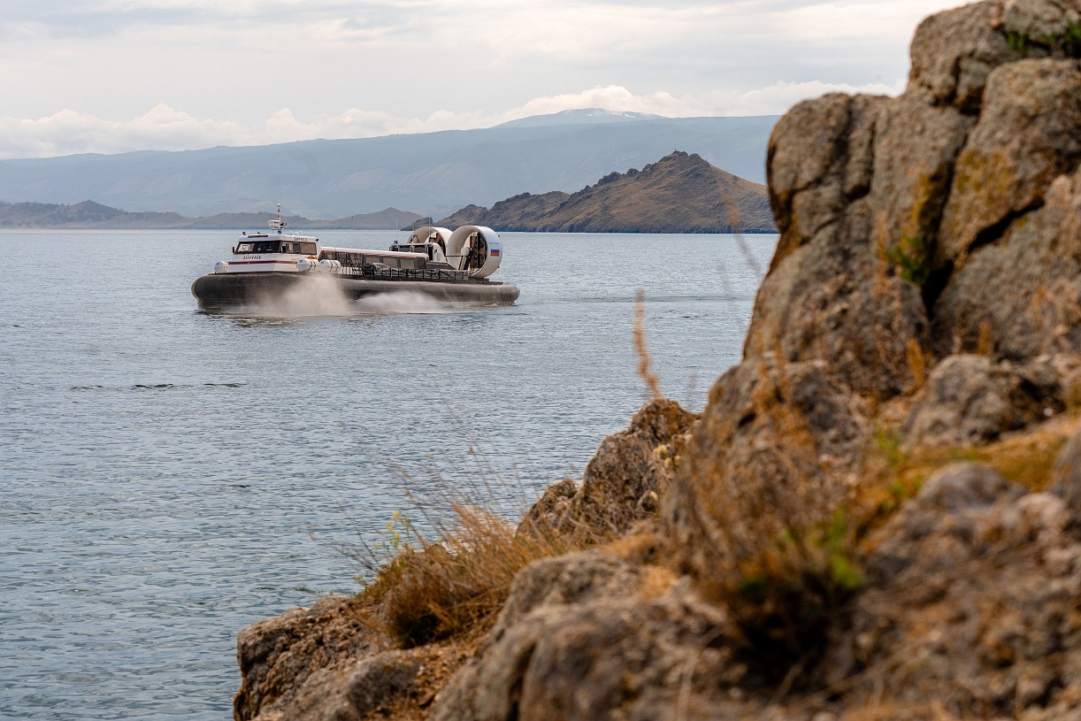 После вкусного завтрака в отеле мы направляемся на СВП «Бирюса» к Ольхонским воротам. Они соединяют юго-западную часть пролива Малое море с Байкалом. Пролив открывается в Малое море мысами Улан и «Кобылья Голова» (в этом месте Ольхонские ворота достигают наибольшей ширины — около 2,7 км).