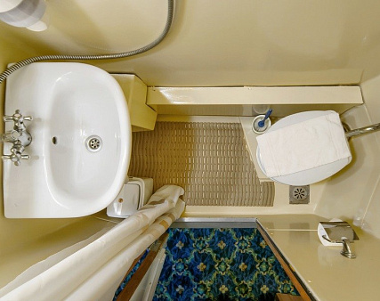 В каюте: четыре спальных места (два внизу, два вторым ярусом), шкаф для одежды, холодильник, радио, душ, санузел, кондиционер, два иллюминатора, электророзетка на 220V.
