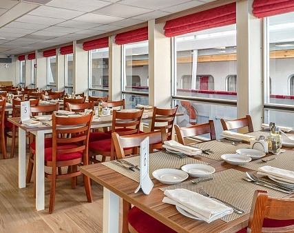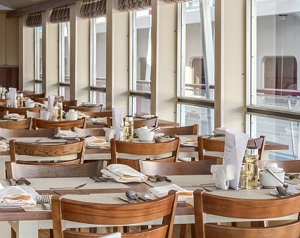 - Завтрак — шведский стол или заказная система с элементами шведского стола, фиксированная рассадка. Включённые напитки (без ограничения): вода, сок, чай, кофе. В рейсах до 4-х дней при ранней высадке в день прибытия завтрак континентальный;