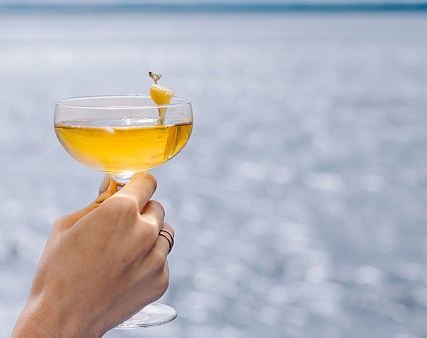 - Ужин — заказная система питания (выбор блюд со 2-го дня круиза). Включённые напитки (без ограничения): вода, чай, кофе, кисломолочный напиток (1 стакан 200 мл на ужин по запросу гостя). На выбор: вино красное / белое / игристое (1 бокал, 125 мл) / водка (1 рюмка, 50 мл) / пиво (1 бокал, 300 мл), домашний морс (1 бокал, 200 мл);