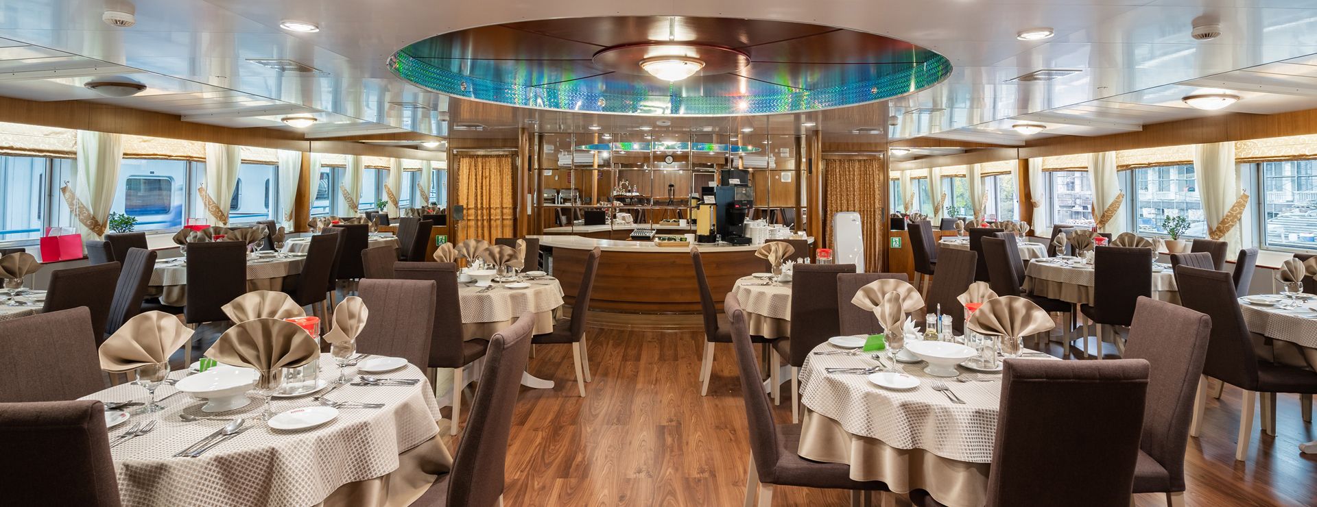- Питание в соответствии с выбранным тарифом: завтрак, полупансион, полный пансион. В день начала и день окончания круиза питание предоставляется в зависимости от времени посадки и высадки; в случае, если время проведения экскурсии совпадает со временем приема пищи, гостю предоставляется питание в ресторане/кафе города или выдается «ланч-бокс»