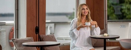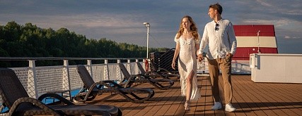 - Ужин – заказная система питания (выбор блюд со 2-го дня круиза), фиксированная рассадка. Включённые напитки (без ограничения): вода, чай, кофе. На выбор: вино красное / белое / игристое (1 бокал, 125 мл) / водка (1 рюмка, 50 мл) / пиво (1 бокал, 300 мл) / домашний морс (1 бокал, 200 мл). По запросу гостя: кисломолочный напиток (1 стакан, 200 мл).