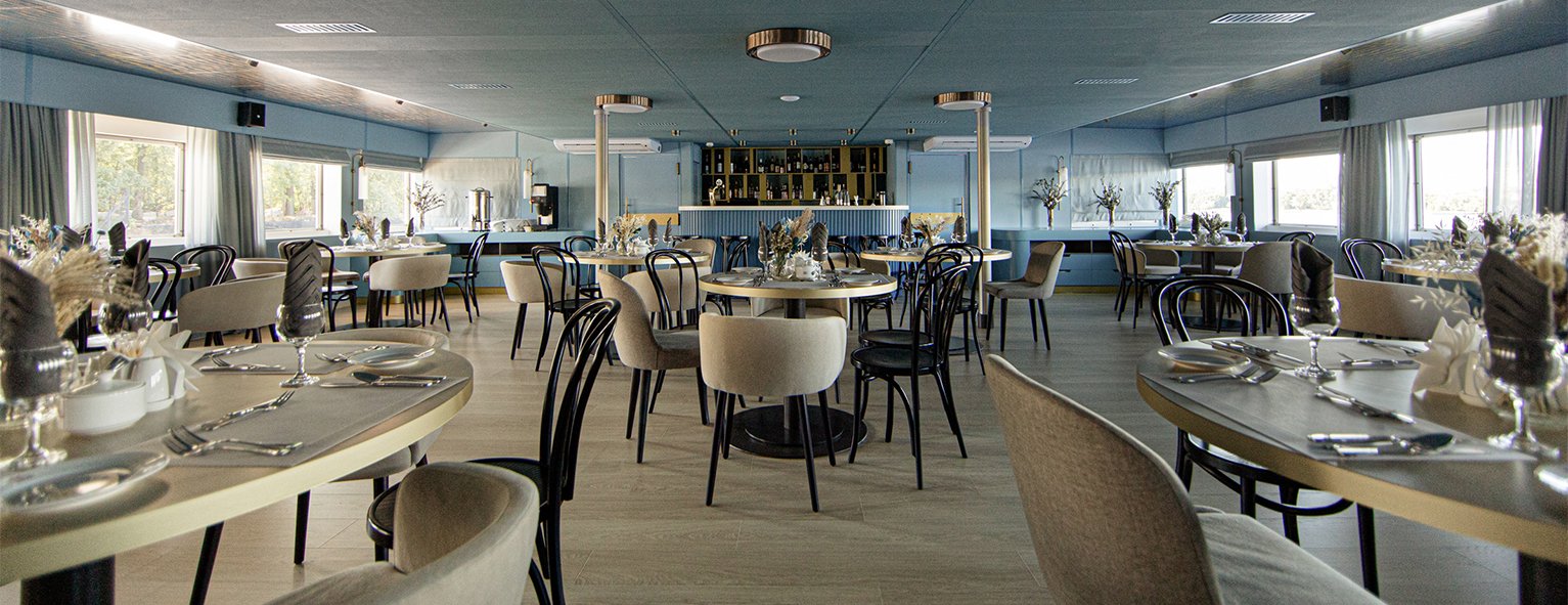 - Обед – заказная система питания (выбор блюд со 2-го дня круиза), фиксированная рассадка. Включённые напитки (без ограничения): вода, чай, кофе, морс.