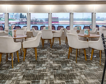 - Завтрак — шведский стол или заказная система с элементами шведского стола, фиксированная рассадка. Включённые напитки (без ограничения): вода, сок, чай, кофе. В рейсах до 4-х дней при ранней высадке в день прибытия завтрак континентальный;