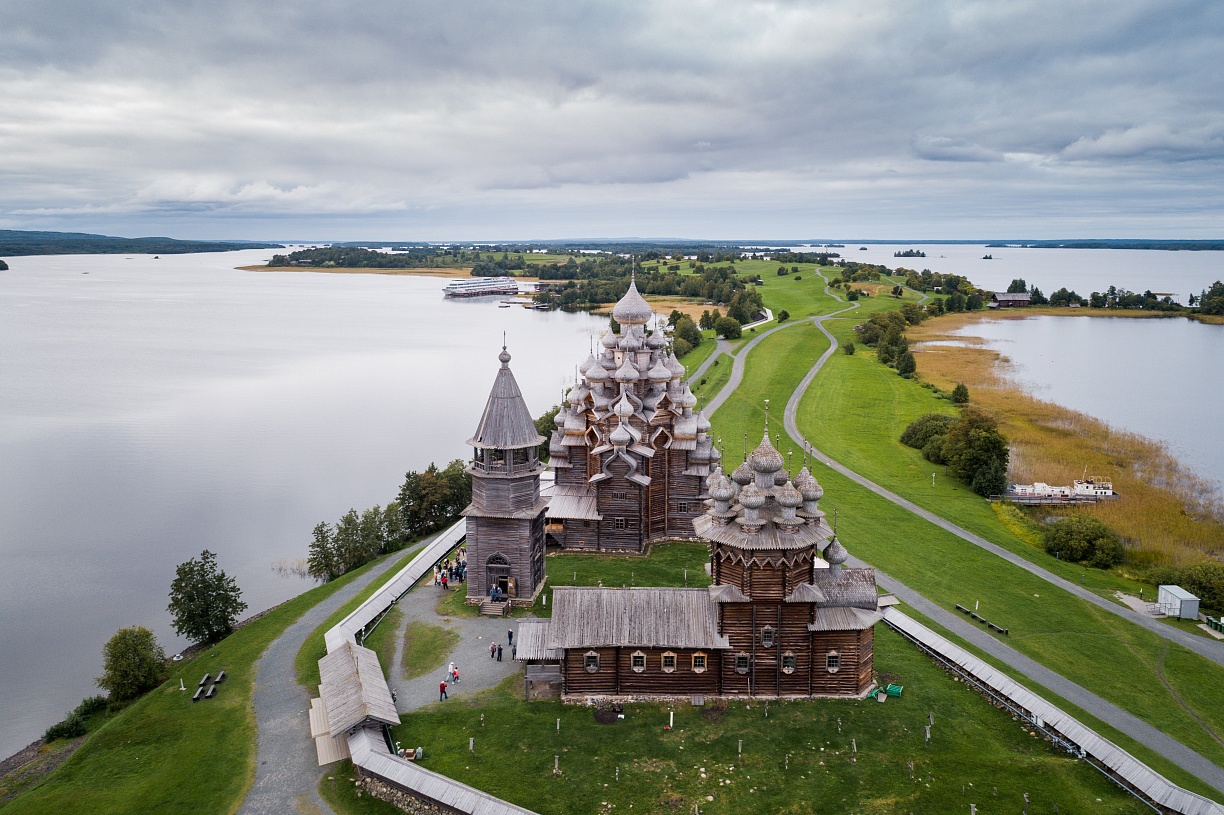 Кижи – уникальный музей-заповедник, расположенный на небольшом острове в Северной части Онежского озера. Здесь можно увидеть полностью деревянную 22-главую церковь Преображения Господня, а также почувствовать себя жителем Русского Севера в музее крестьянской культуры.