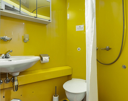 В каюте: одно спальное место, шкаф для одежды, радио, кондиционер, телевизор, холодильник, фен, сейф, душ, санузел, обзорное окно, электророзетка на 220V.
