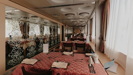 - Ужин – заказная система питания (выбор блюд со 2-го дня круиза), фиксированная рассадка. Включённые напитки (без ограничения): вода, чай, кофе. На выбор: вино красное / белое / игристое (1 бокал, 125 мл) / водка (1 рюмка, 50 мл) / пиво (1 бокал, 300 мл) / домашний морс (1 бокал, 200 мл). По запросу гостя: кисломолочный напиток (1 стакан, 200 мл).