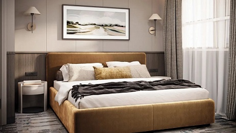 Комфортабельная комната с современным интерьером. Удобства: диван (раскладывается), телевизор, двуспальная кровать (кровати раздвигаются), прикроватные тумбы, письменный стол, холодильник, книжный стеллаж, журнальный столик, пуф, шкаф для одежды, мини-бар, 4 розетки на 220V, две розетки USB, фен. Размер кровати — 175х210 см. В каюте возможно 3-местное размещение.