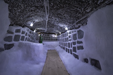 Город, построенный в вечной мерзлоте. Глубина промерзания земли здесь достигает 35 метров, и участники экспедиции спускаются в Музей вечной мерзлоты, созданный учеными в уникальной подземной пещере. В музее можно увидеть, как выглядят деревья, произраставшие здесь 50 000 лет назад, и другие артефакты ушедших эпох, сохраненные подо льдом.
