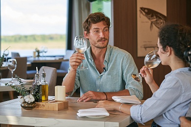 В этот день у вас будет отличная возможность насладиться пребыванием на борту. Приглашаем совершить удивительное путешествие в мир Енисейской кухни в одном из ресторанов, посетить сибирский банный комплекс, размять мышцы в современном тренажерном зале или найти единомышленников за бокалом вина среди других участников круиза в одном из уютных мест на борту.