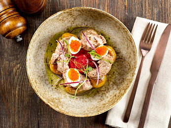 - Обед — заказная система питания (выбор блюд со 2-го дня круиза) с элементами шведского стола (десерт, фрукты, морсы), фиксированная рассадка. Включённые напитки (без ограничения): вода, чай, кофе, домашний морс;