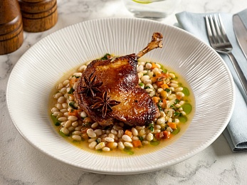 - Обед — заказная система питания (выбор блюд со 2-го дня круиза) с элементами шведского стола (десерт, фрукты, морсы), фиксированная рассадка. Включённые напитки (без ограничения): вода, чай, кофе, домашний морс;
