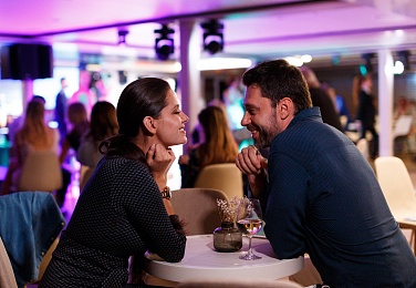 - Ужин — заказная система питания (выбор блюд со 2-го дня круиза), фиксированная рассадка. Включённые напитки (без ограничения): вода, чай, кофе, домашний морс. На выбор: вино красное / белое / игристое (1 бокал, 125 мл) / водка (1 рюмка 50 мл) / пиво (1 бокал, 300 мл).