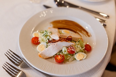 - Обед — заказная система питания (выбор блюд со 2-го дня круиза) с элементами шведского стола (десерт, фрукты, морсы), фиксированная рассадка. Включённые напитки (без ограничения): вода, чай, кофе, домашний морс;