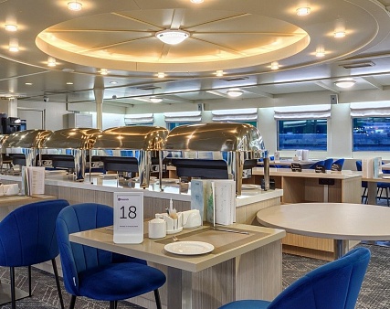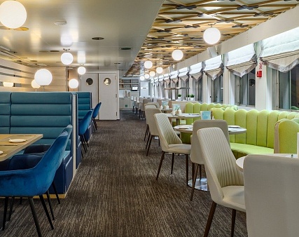 - Обед – заказная система питания (выбор блюд со 2-го дня круиза), фиксированная рассадка. Включённые напитки (без ограничения): вода, чай, кофе, морс.