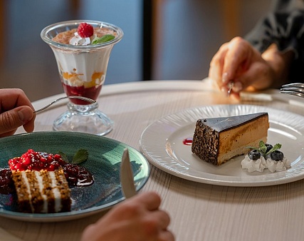 - Завтрак – шведский стол или заказная система с элементами шведского стола, фиксированная рассадка. Включённые напитки (без ограничения): вода, сок, чай, кофе.