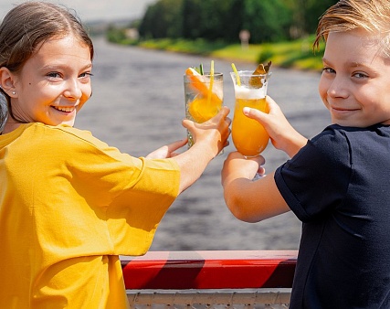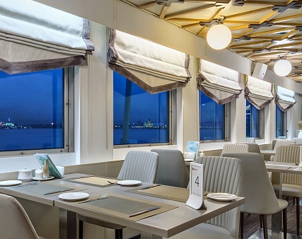 - Ужин – заказная система питания (выбор блюд со 2-го дня круиза), фиксированная рассадка. Включённые напитки (без ограничения): вода, чай, кофе. На выбор: вино красное / белое / игристое (1 бокал, 125 мл) / водка (1 рюмка, 50 мл) / пиво (1 бокал, 300 мл) / домашний морс (1 бокал, 200 мл). По запросу гостя: кисломолочный напиток (1 стакан, 200 мл).