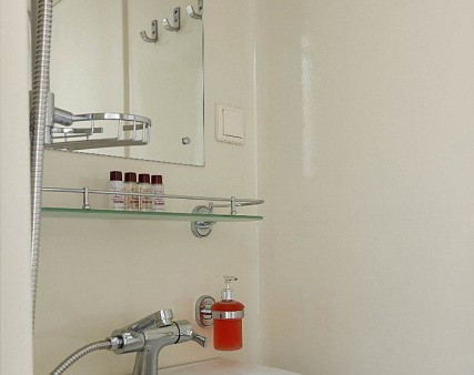 В каюте: одно спальное место, холодильник, минибар, сейф, телевизор, шкаф для одежды, радио, душ, санузел, кондиционер, обзорное окно, фен, электророзетка на 220V.