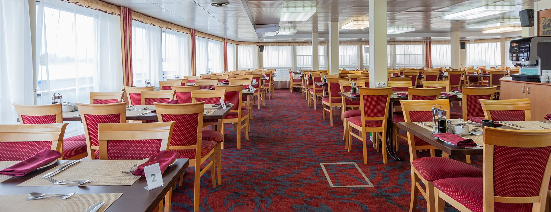 - Завтрак: шведский стол или заказная система с элементами шведского стола. Включены напитки без ограничения: вода, сок, чай, кофе. В рейсах до 4-х дней при ранней высадке в день прибытия завтрак континентальный;