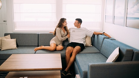 В каюте: балкон, одна двуспальная кровать, диван, холодильник, кондиционер, гардероб, телевизор, телефон, фен, сейф, халаты, увлажнитель воздуха, кофемашина, чайник. Ванная комната с ванной и туалетом.