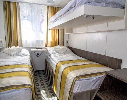 Однокомнатная двухъярусная каюта с удобствами, рассчитанная на размещение до трех человек