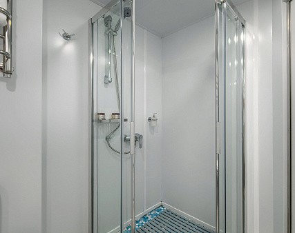 Расширена площадь санблока, отдельный душ, санузел.