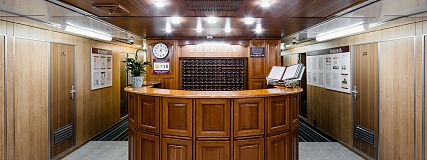 После регистрации вам выдадут ключ от вашей каюты, приглашение в ресторан (номер закреплённого за вами столика), расчётную карту компании «ВодоходЪ», бланк заказа экскурсий (для заполнения в первый день круиза).