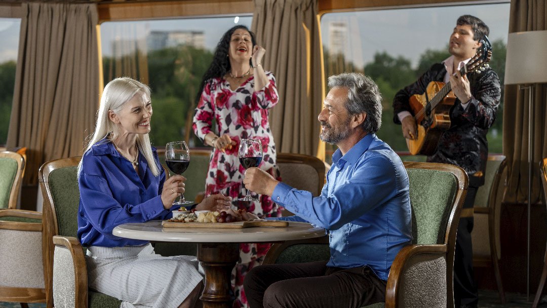 - Ужин – заказная система питания (выбор блюд со 2-го дня круиза), фиксированная рассадка. Включённые напитки (без ограничения): вода, чай, кофе. На выбор: вино красное / белое / игристое (1 бокал, 125 мл) / водка (1 рюмка, 50 мл) / пиво (1 бокал, 300 мл) / домашний морс (1 бокал, 200 мл). По запросу гостя: кисломолочный напиток (1 стакан, 200 мл).
