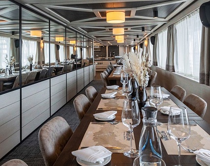 Вы отдохнете и душой, и телом в круизе на нашем теплоходе. Прекрасный СПА-центр с сауной, соляной пещерой и фитобаром восстановит ваши силы. Авторское меню по дороге меняется 4 раза и включает местные специалитеты. Основной акцент сделан на блюдах северной кухни: сугудай из пеляди и муксуна, свежевыловленная нельма слабой соли, медальоны из оленины, «енисейская кастрюля» – уха из трех видов рыб.