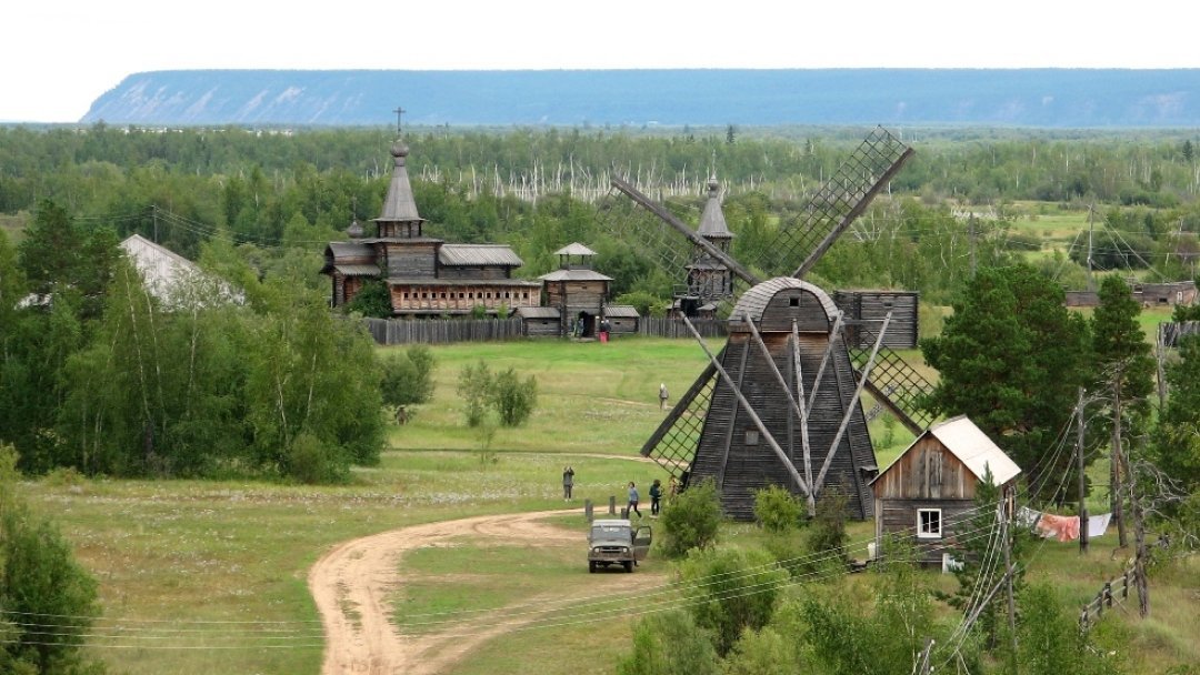 Переправа на пароме. Приветственный эвенкийский ритуал на берегу. Пешая прогулка до центра поселка. Фольклорный концерт. Продажа сувениров. Посещение краеведческого музея и православной церкви.