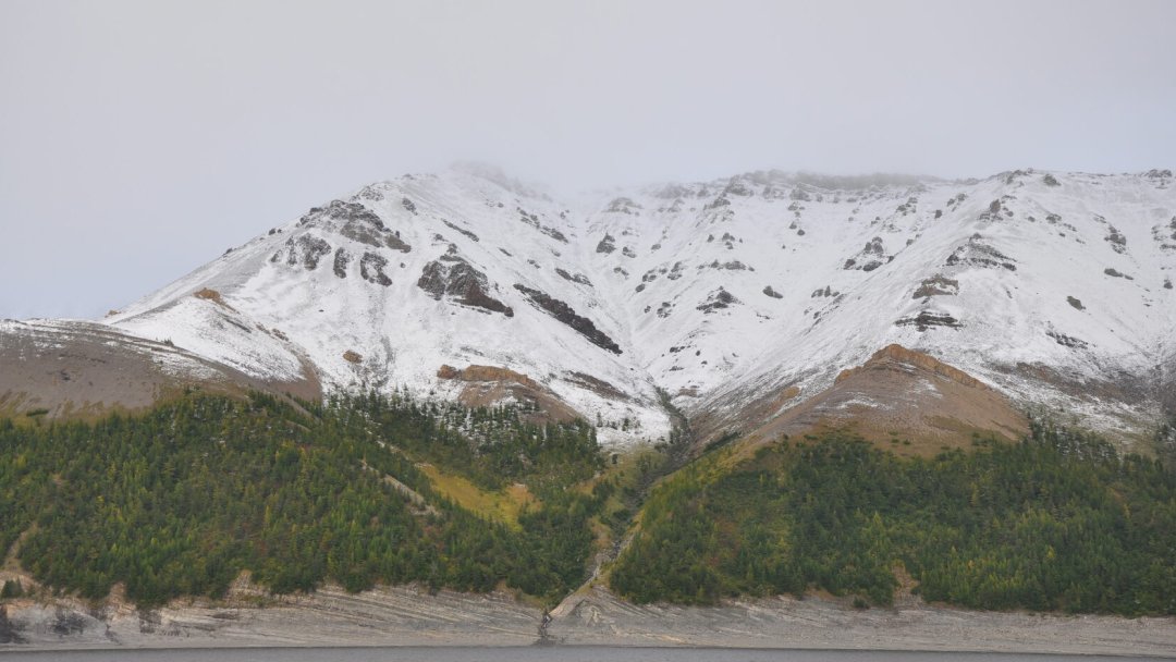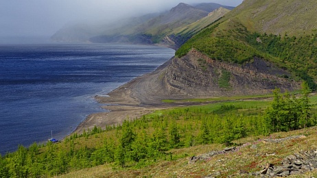 Остров Столб — один из наиболее впечатляющих памятников природы Арктики — возвышается над водой на месте слияния реки Лены и океана. Его возраст около 400 млн лет.