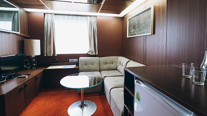 Двухкомнатная двухместная каюта (площадь 19,7 кв.м.) со всеми удобствами, расположенная на шлюпочной палубе.