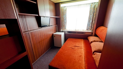 Одноместная каюта (площадь 6,8 кв.м.) со всеми удобствами, расположенная на главной палубе.