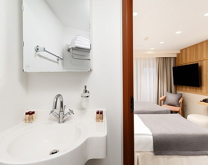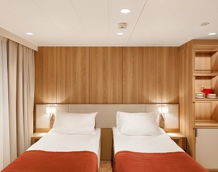 В каютах 214, 234 (средняя палуба), 312 и 325 (шлюпочная палуба) — две односпальные кровати размером 80х200 см (можно сдвинуть)