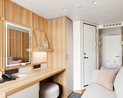 Площадь каюты от 15,7 м2 до 16,5 м2