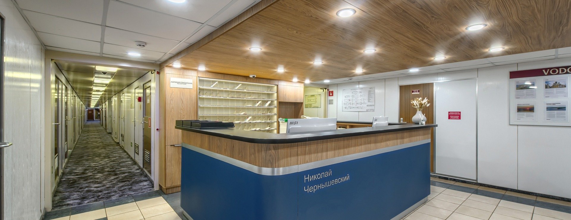 После регистрации вам выдадут ключ от вашей каюты, приглашение в ресторан (номер закреплённого за вами столика), расчётную карту компании «ВодоходЪ», бланк заказа экскурсий (для заполнения в первый день круиза).