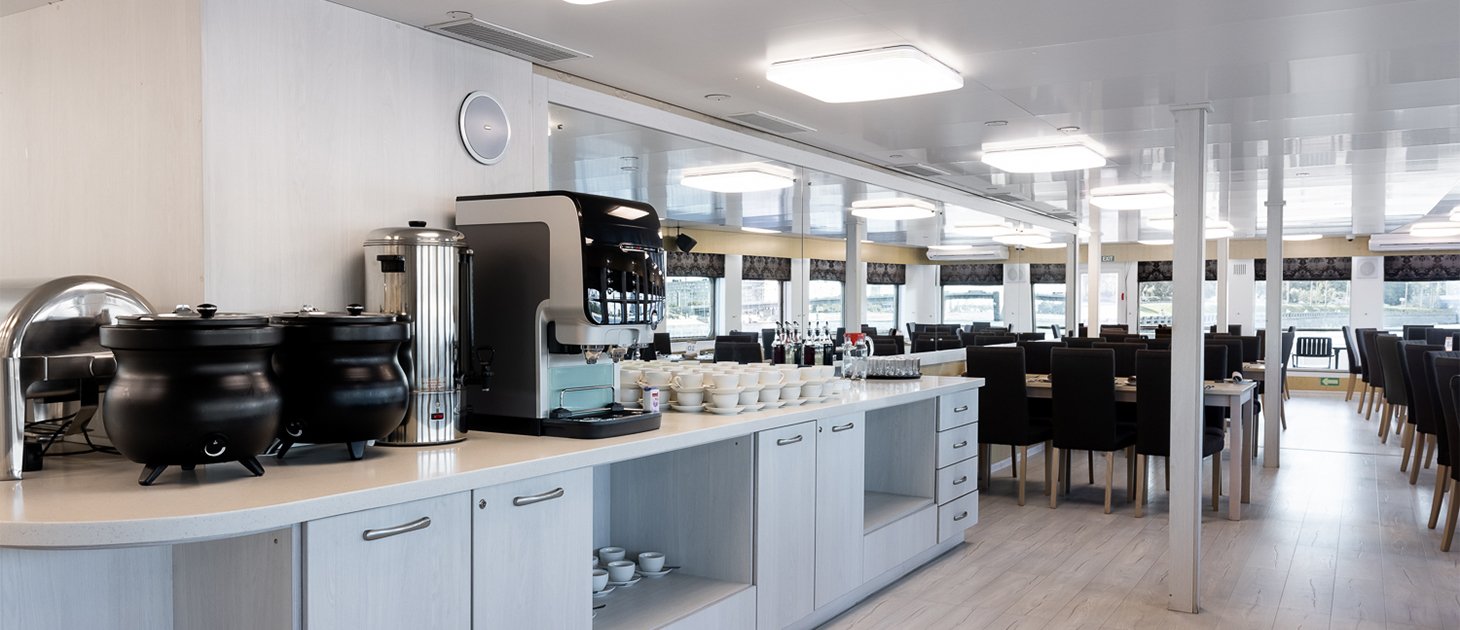 Первая услуга по питанию – обед. Каждый день на борту теплохода вас будет ждать развлекательная программа.