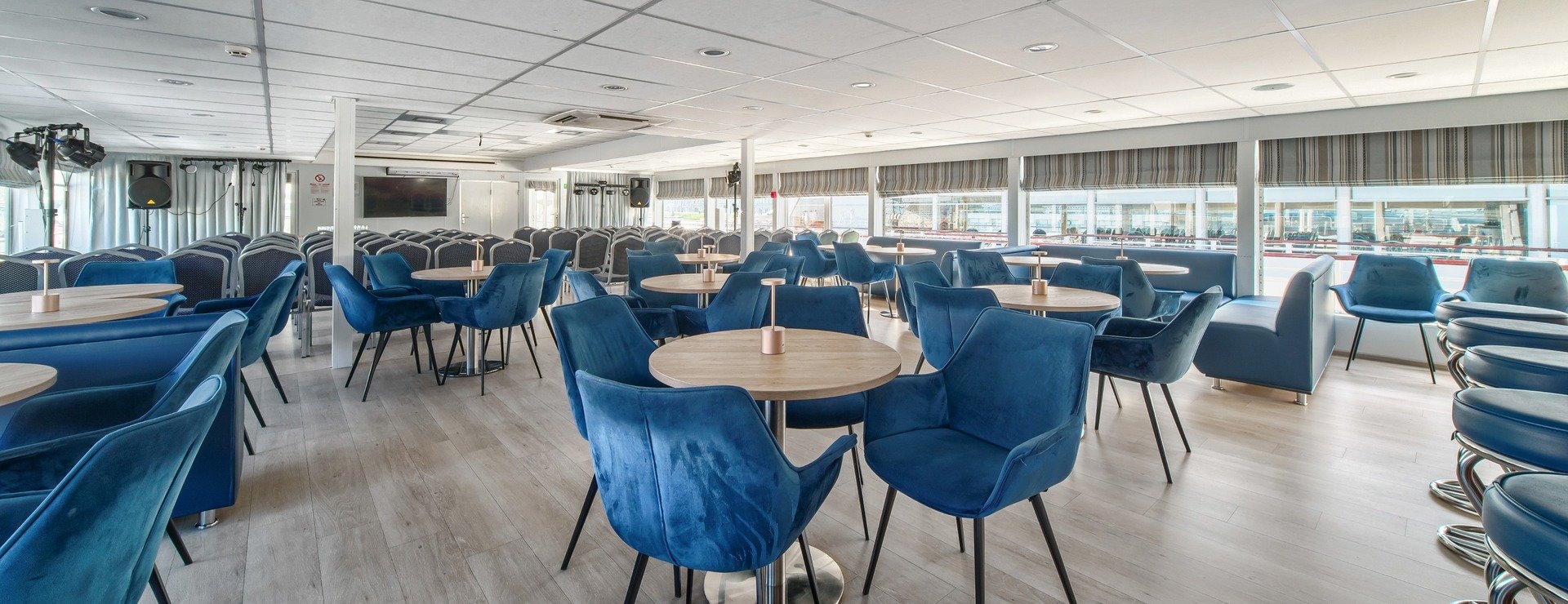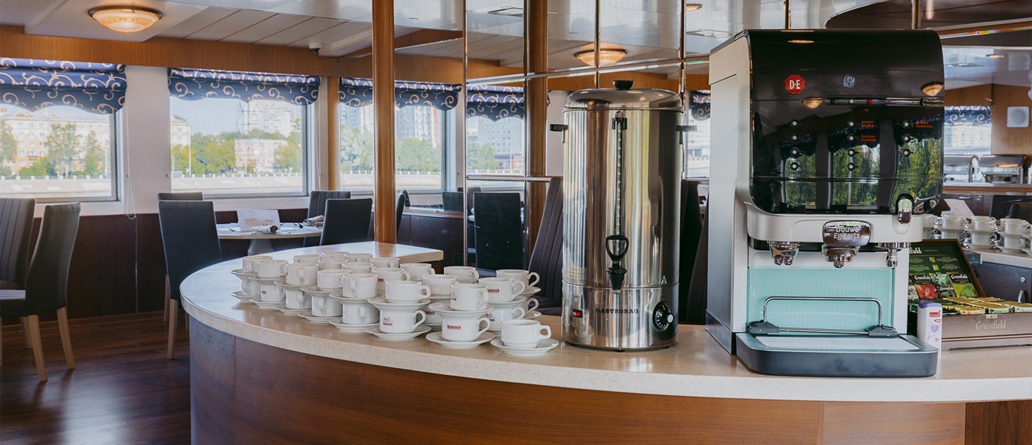 - Обед – заказная система питания (выбор блюд со 2-го дня круиза). Включенные напитки (без ограничения): чай, кофе. Фиксированная рассадка;