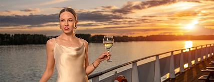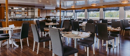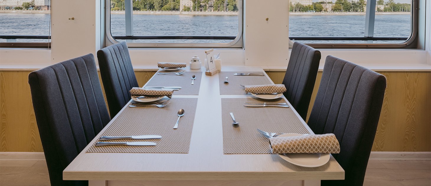 - Ужин – заказная система питания (выбор блюд со 2-го дня круиза). Включенные напитки (без ограничения): вода, чай, кофе. Кисломолочный напиток (1 стакан, 200 мл.) по запросу гостя. На выбор: вино красное / белое / игристое (1 бокал, 125 мл.) / водка (1 рюмка, 50 мл.) / пиво (1 бокал, 300 мл.) / домашний морс (1 бокал, 200 мл.). Фиксированная рассадка;