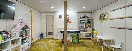 Комфортабельная гостиная с современным интерьером, мягкая мебель (два кресла, диван 150х190 см), журнальный столик, шкаф, телевизор, холодильник, фен, сейф, радио, два обзорных окна, электророзетка на 220V.