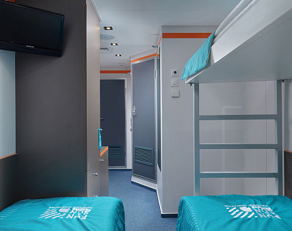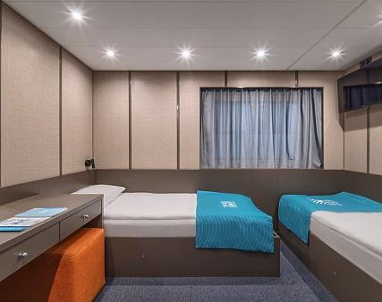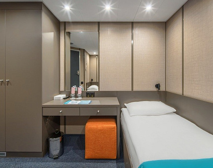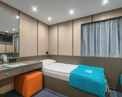 Возможна продажа каюты в двухместном одноярусном размещении (по стоимости 2-местной каюты).