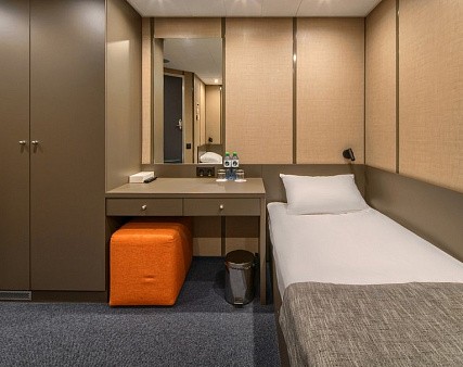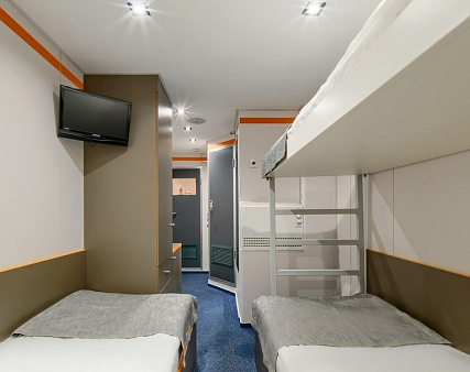 Возможна продажа каюты в двухместном одноярусном размещении (по стоимости 2-местной каюты).